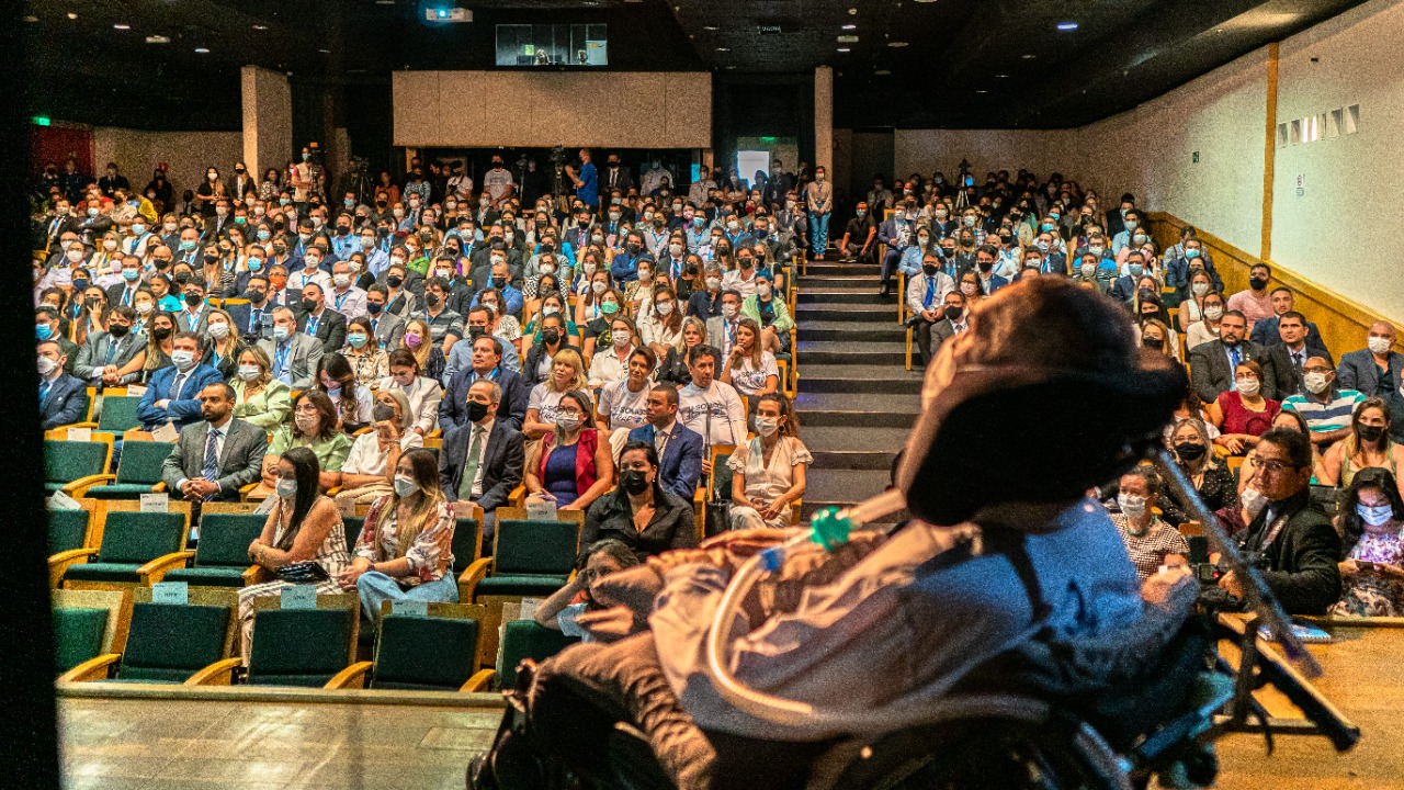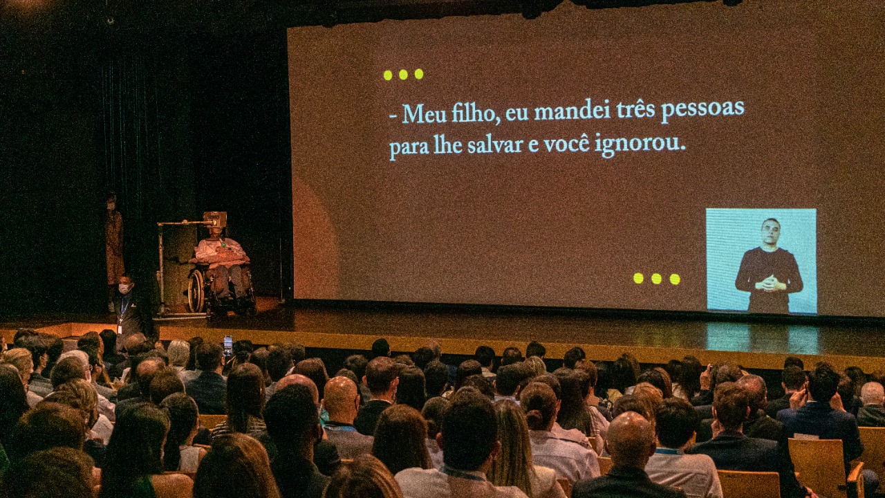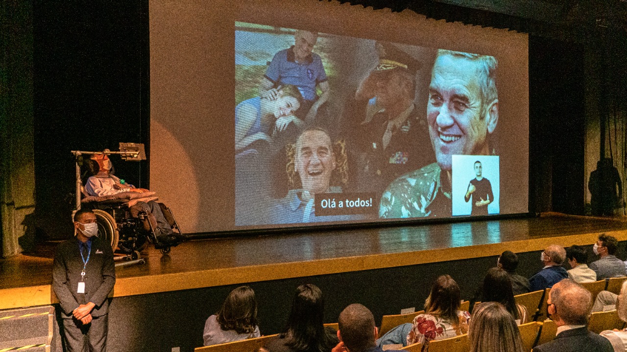 Contando sua história de vida antes e depois do diagnóstico, o General Villas Bôas trouxe à tona memórias, pensamentos e sentimentos que permearam cada momento. Por cerca de 15 minutos, ele fez a apresentação com auxílio de um vídeo e com narração por meio de tecnologia assistiva. Ao final, a plateia aplaudiu em pé.