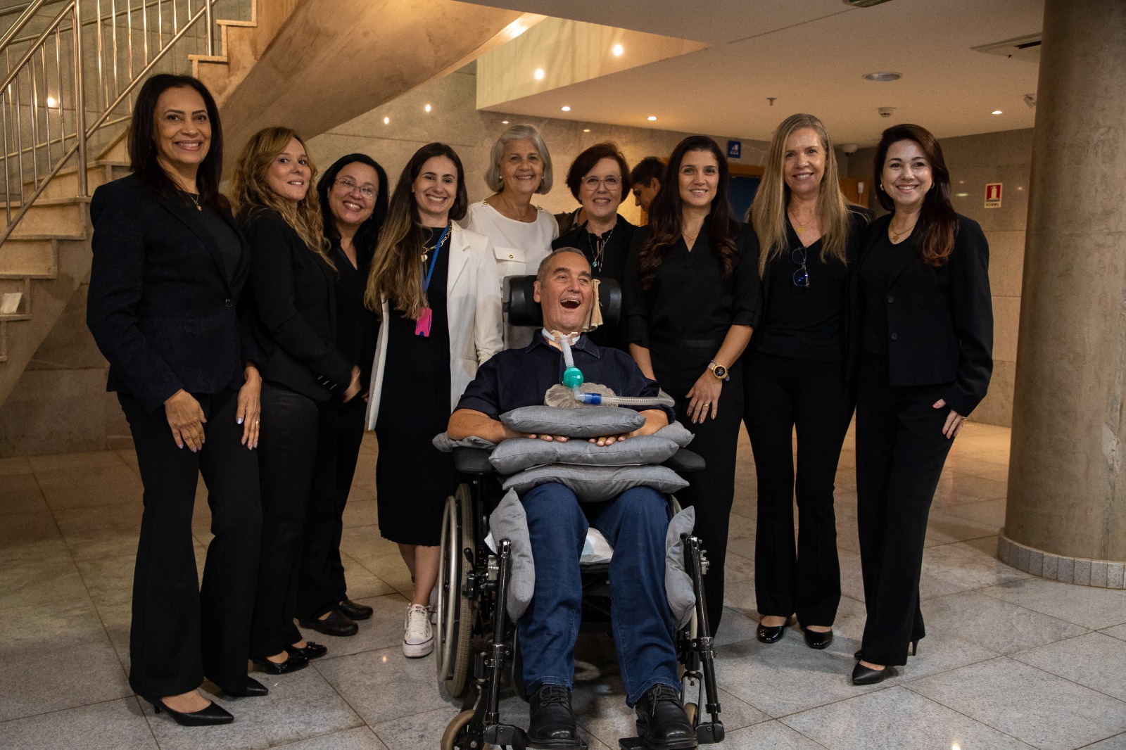 O General Villas Bôas ao final do evento, com o Diretor Executivo, Alexandre Chitarrelli Torres, a Presidente do Conselho Superior, Maria Aparecida Villas Bôas, e equipe do LAIS/UFRN.